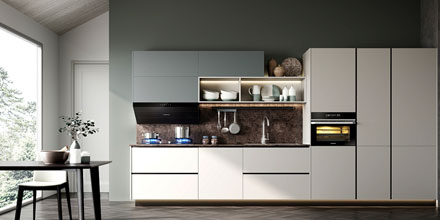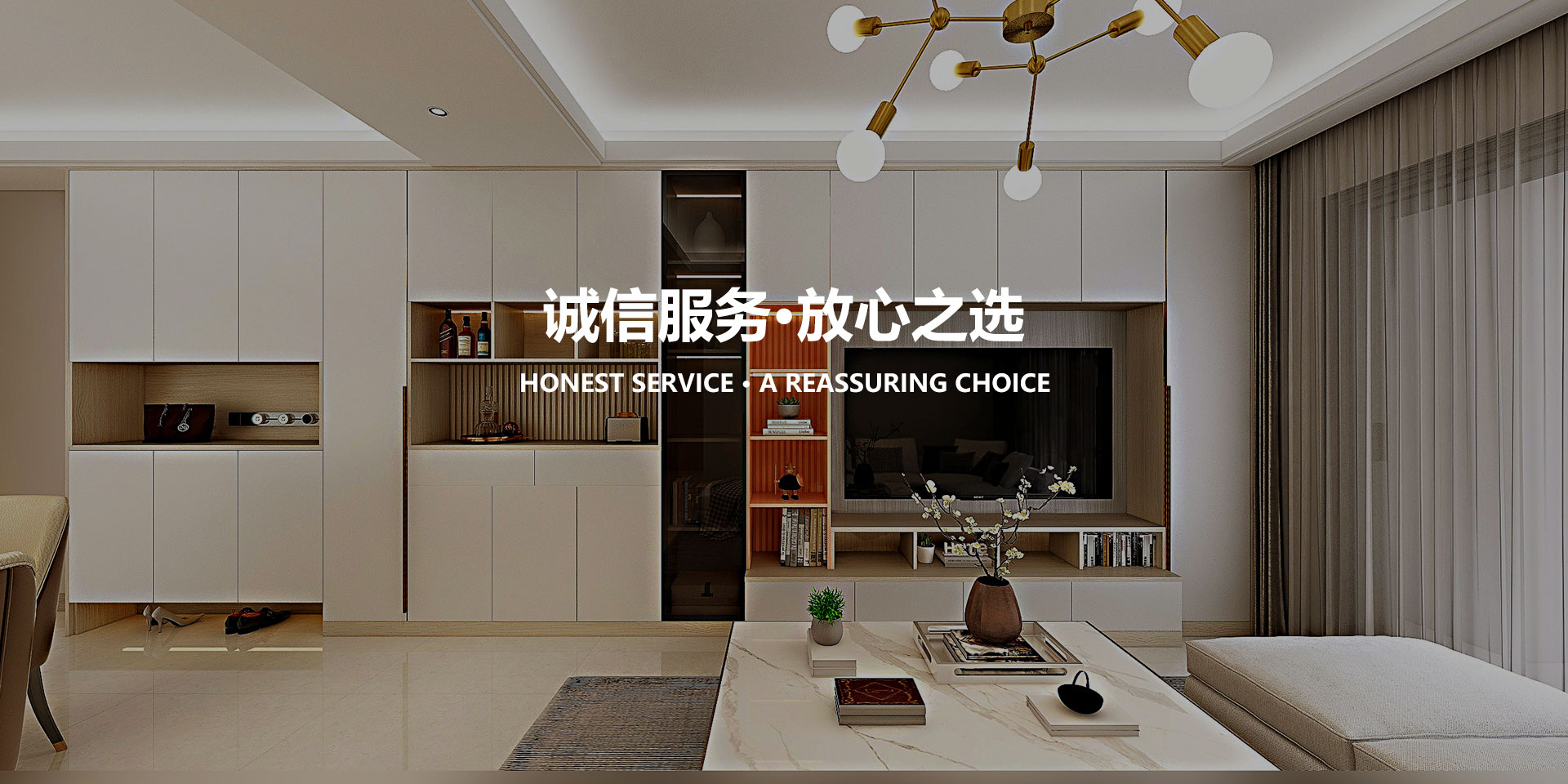 公司业务涵盖整体橱柜、整体衣柜、套装门、酒窖、床头、吧台等全屋定制家具